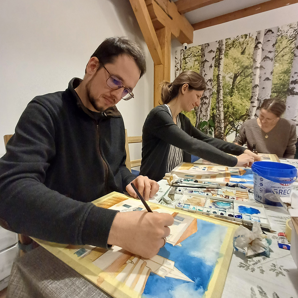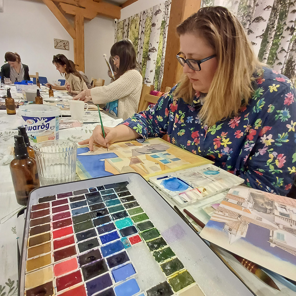 - Dzień praktyki akwarelowej – ok. 6h malowania – 2 tematy